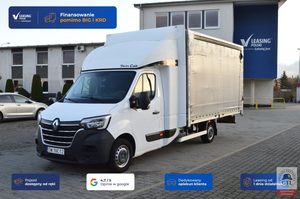 Niskopodwoziowa, ABS, pneumatyka Wabco, hamulce bębnowe, felgi stalowe, osie Gigant, 3 osie, zawieszenie hydrauliczne, podpory Jost, koła 235/75 R17,5. |