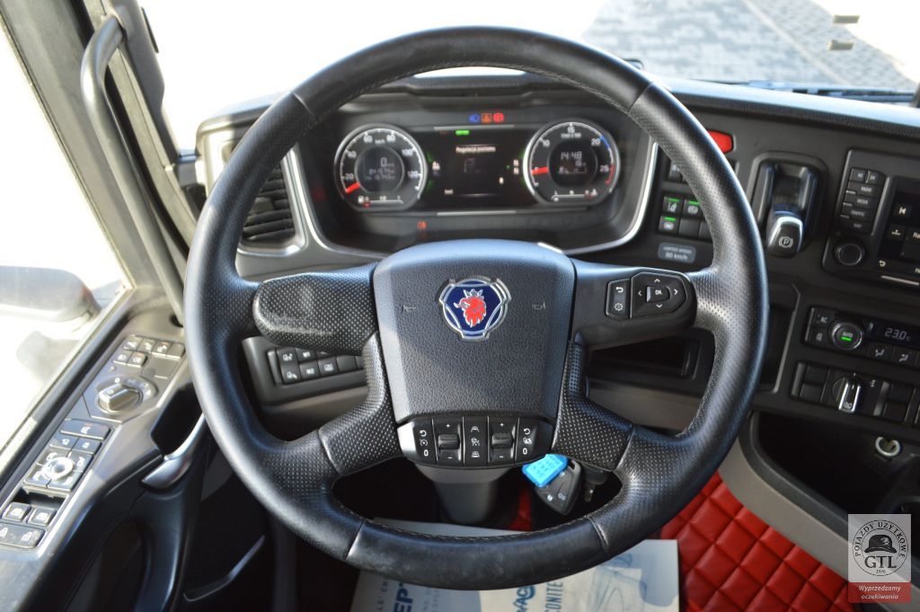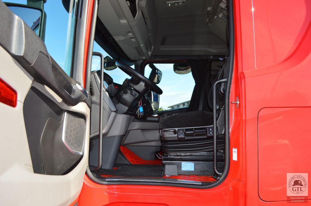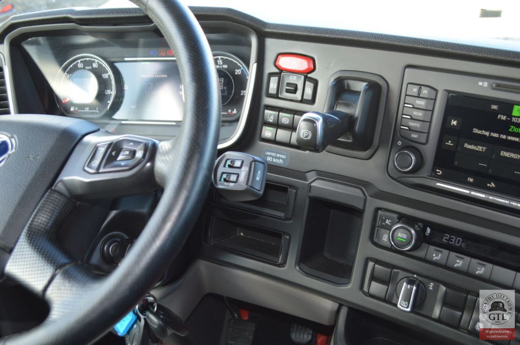 1. ELEMENTY ZEWNĘTRZNE * Owiewka dachowa, regulowana, oraz owiewki boczne * Lusterka boczne regulowane elektrycznie * amek centralny * Wywietrznik dachowy otwierany elektrycznie * Szyby boczne podnoszone elektrycznie 2. ELEMENTY WEWNĘTRZNE (kabina, siedzenia, wyposażenie wnętrza) * Kabina sypialna CS20N (Normal) * Fotel kierowcy z zawieszeniem pneumatycznym * Radio * Klimatyzacja * Tempomat (Cruise control) * Immobilizer * Tachograf cyfrowy * Ogrzewanie postojowe powietrzne 3.SYSTEMY ELEKTRONICZNE / WSPOMAGAJĄCE * ESP (system stabilizacji toru jazdy) * EBS (elektronicznie sterowany system hamulcowy) * (układ monitorowania ciśnienia w oponach) * LDW (układ ostrzegający o niezamierzonej zmianie pasa ruchu) * System Hill Hold (wspomaganie ruszania pod górę) * Elektronicznie regulowana wysokość zawieszenia * Hamulce silnikowy * Blokada mechanizmu różnicowego tylnej/przedniej osi * Zawieszenie pneumatyczne tylnej i/lub przedniej osi