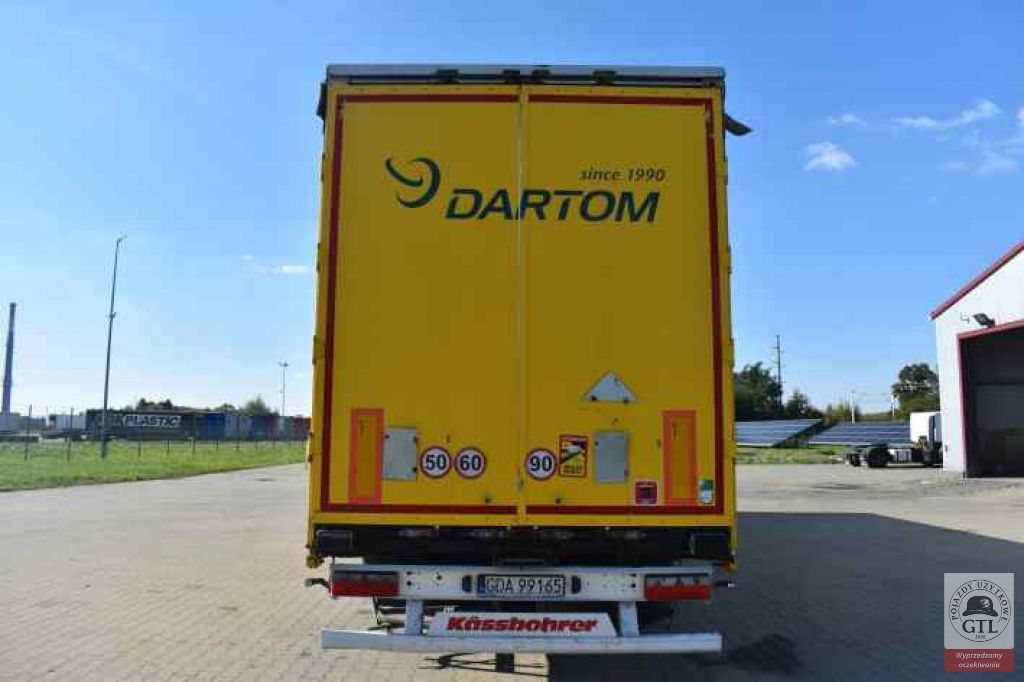 Plandeka, pneumatyka WABCO, hamulce tarczowe, felgi stalowe, osie BPW, 3 osie, zawieszenie pneumatyczne, podpory JOST, koła 385/55 R22,5.