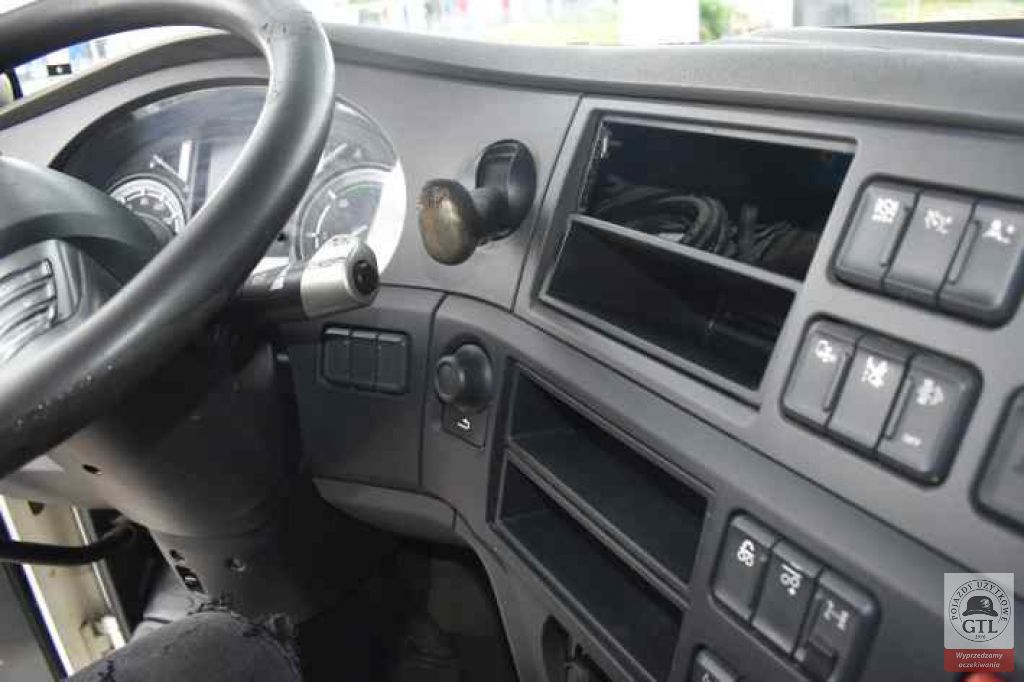 EURO 6, ABS, ASR, 2 miejsca, 2 łóżka, zwalniacz, klimatyzacja postojowa, tempomat, ogrzewanie postojowe, lusterko rampowe, 3 osie, podnoszona oś, przekładnia automatyczna, sprzęt holowniczy, fotel kierowcy na poduszce, osłona przeciwsłoneczna, elektryczne szyby, centralny zamek, kabina Super Space Cab, halogen, felgi stalowe, koła 315/70 R22,5.