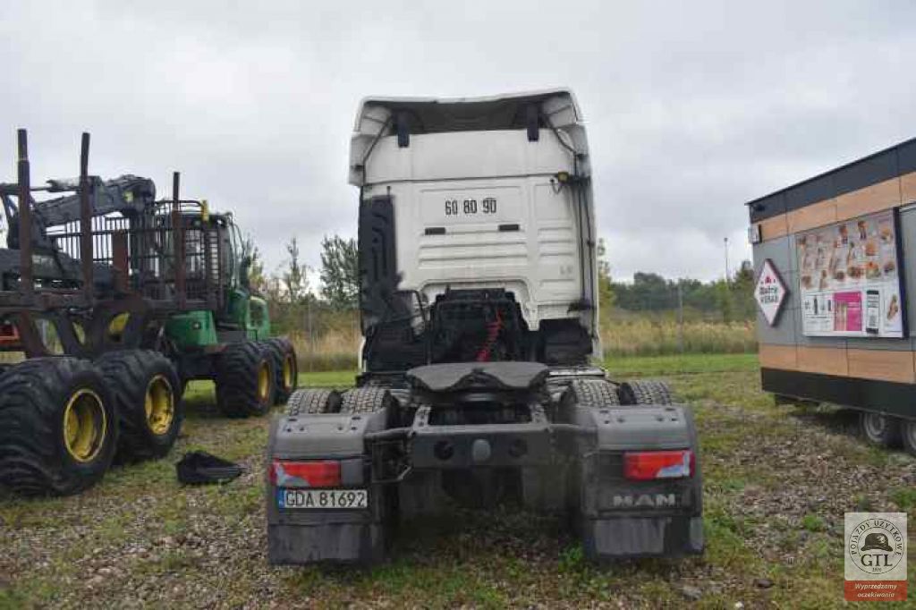 EURO 6, ABS, ASR, zwalniacz, klimatyzacja, tempomat, lusterko rampowe, przekładnia automatyczna, sprzęt holowniczy, fotel kierowcy na poduszce, osłona przeciwsłoneczna, elektryczne szyby, centralny zamek, radio, szyberdach, kabina XLX, halogen, felgi stalowe, immobiliser, koła 315/80 R22,5. (pojazd uszkodzony, zdekompletowany)