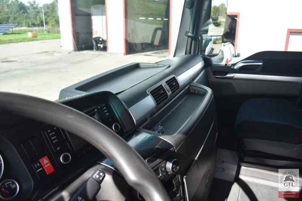 EURO 6, ABS, ASR, zwalniacz, klimatyzacja, tempomat, ogrzewanie postojowe, lusterko rampowe, przekładnia automatyczna, sprzęt holowniczy, fotel kierowcy na poduszce, elektryczne szyby, centralny zamek, szyberdach, radio, kabina XLX, halogen, felgi stalowe, immobiliser, koła 315/80 R22,5.