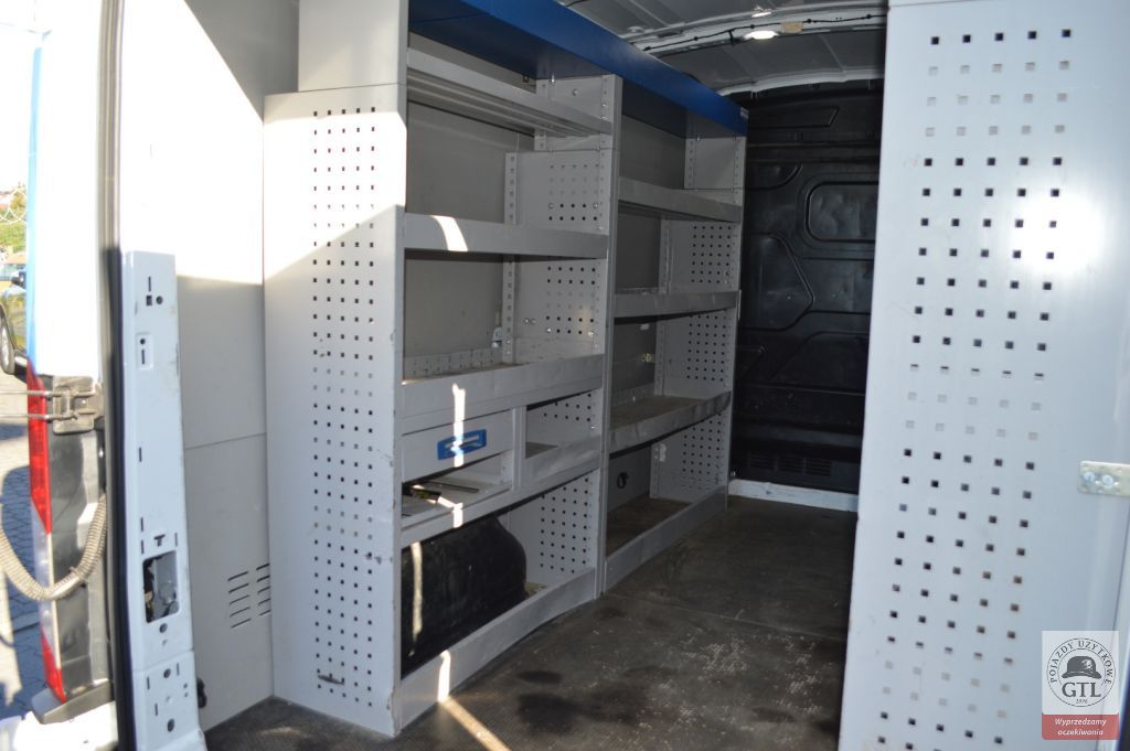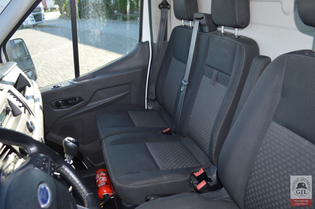 1. ELEMENTY ZEWNĘTRZNE: * Czujniki parkowania, z przodu i z tyłu pojazdu * Drzwi przesuwne z prawej strony, nieprzeszklone * Drzwi tylne dwuskrzydłowe, bez szyb, kąt otwarcia 180 stopni * Lakier uni * Lusterka boczne elektrycznie regulowane i podgrzewane * Światła do jazdy dziennej * Światła przeciwmgielne 2. ELEMENTY WEWNĘTRZNE: * Gniazdo 2x12V * Klimatyzacja manualna z przodu * Kolumna kierownicy z regulacją położenia w dwóch płaszczyznach * Komputer pokładowy * Konsola podsufitowa * Schowek podręczny * Szyby przednie sterowane elektrycznie, z impulsowym otwieraniem i zamykaniem szyby kierowcy * Tempomat ze skórzaną kierownicą i regulowanym ogranicznikiem prędkości * Wskaźnik zmiany biegu 3. SYSTEMY I FUNKCJE ELEKTRONICZNE: * ABS * ESC – elektroniczny układ stabilizacji toru jazdy * HSA – system wspomagania ruszania pod górę * LAC – system kontroli obciążenia pojazdu * System Auto Start Stop * System wlewu paliwa Ford Easy Fuel * Wybór trybu jazdy