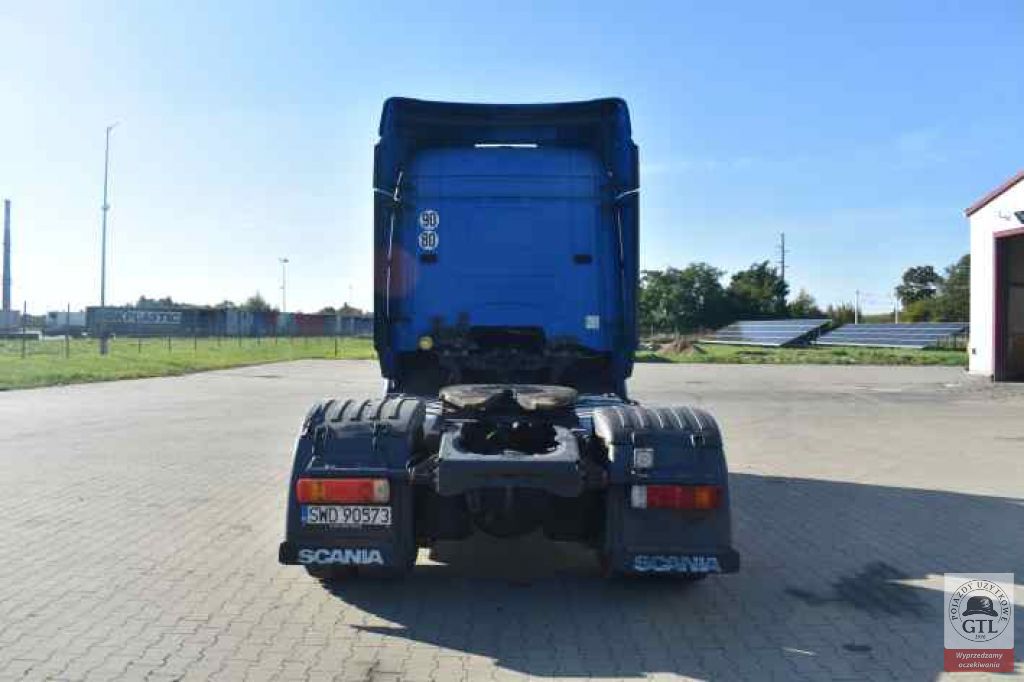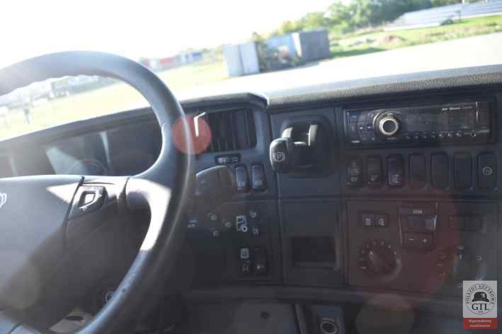 EURO 5, ABS, ASR, zwalniacz, klimatyzacja postojowa, tempomat, ogrzewanie postojowe (uszkodzone), lusterko rampowe, hydraulika jednoobwodowa, przekładnia automatyczna, sprzęt holowniczy, fotel kierowcy na poduszce, osłona przeciwsłoneczna, elektryczne szyby, centralny zamek, radio, szyberdach, kabina highline, halogen, felgi stalowe, immobiliser, koła 385/65 R22,5, 315/80 R22,5.