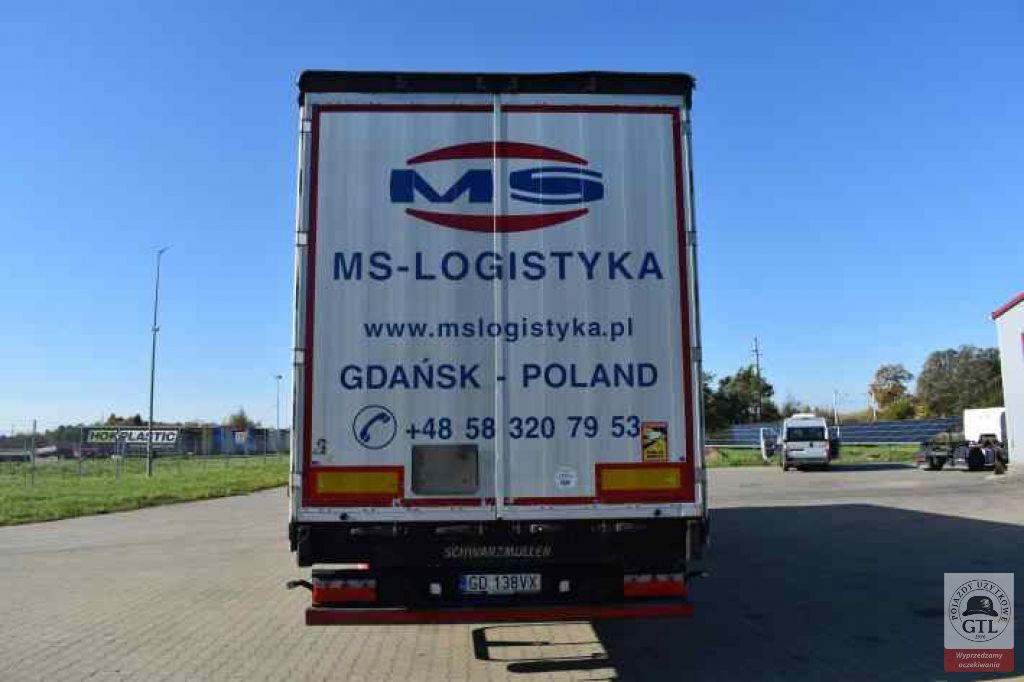 Plandeka, ABS, pneumatyka WABCO, hamulce tarczowe, felgi stalowe, osie SAF, 3 osie, podnoszona oś, zawieszenie pneumatyczne, podpory JOST, koła 385/65 R22,5.