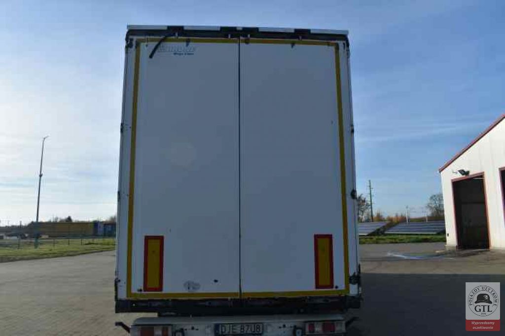 Plandeka, ABS, pneumatyka HALDEX, hamulce tarczowe, felgi stalowe, osie SAF, 3 osie, podnoszona oś, zawieszenie pneumatyczne, podpory JOST, koła 385/55 R19,5.