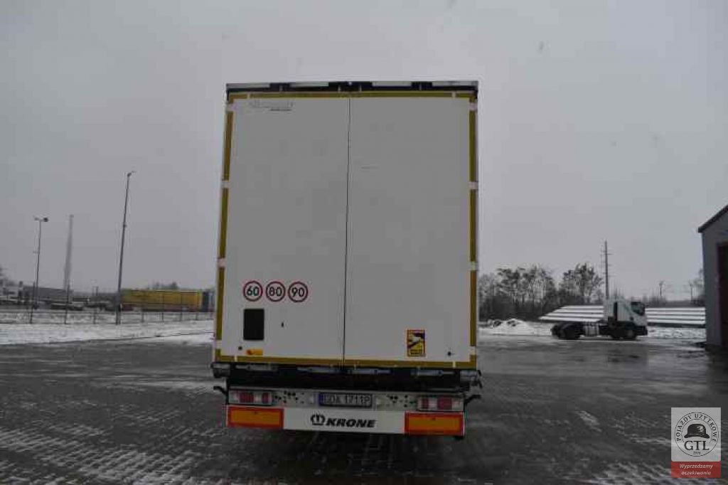 Plandeka, ABS, pneumatyka KRONE, hamulce tarczowe, felgi stalowe, osie KRONE, 3 osie, podnoszona oś, zawieszenie pneumatyczne, podpory SAF, koła 385/65 R22,5.