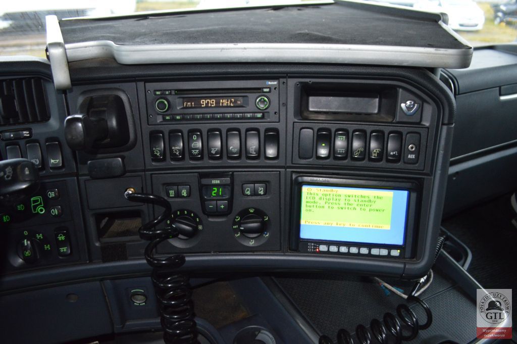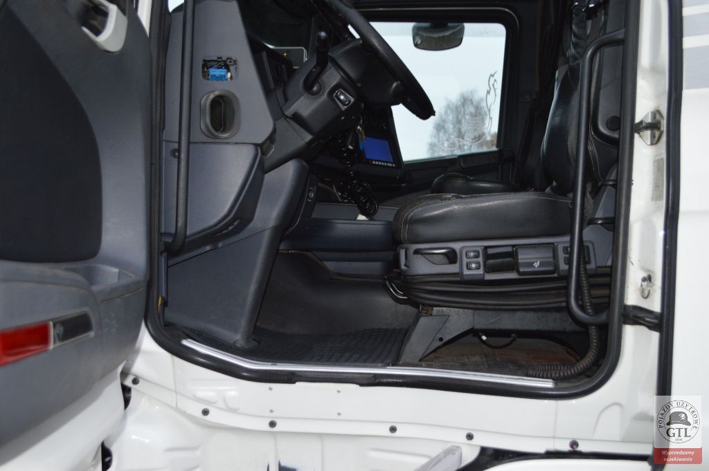 1. Elementy zewnętrzne : * Lusterko rampowe * Hydraulika * 3 osie * Zawieszenie na poduszkach * Halogeny na dachu * Halogeny w zderzaku przednim * Reflektory LED * Zaczep tylny * Zestaw kłonice EXTE x4 * Szyberdach * Epsilon – żuraw do załadunku drewna (rok 2010, nr ser. 84367 2. Elementy wewnętrzne : * Łóżko * Klimatyzacja automatyczna * Fotel kierowcy na poduszce * Osłona przeciwsłoneczna * Elektryczne szyby * Centralny zamek * Radio * Gniazdo AUX * Lodówka * Kabina HIGHLINE 3. Systemy, asysty i wyposażenie techniczne : * ABS * ASR * Tempomat * Ogrzewanie postojowe * EURO 6 * Zwalniacz * Automatyczna skrzynia biegów Firma zastrzega sobie prawo do zmiany cen. Zdjęcia zawarte w ogłoszeniu mają charakter poglądowy. Ogłoszenie ma charakter informacyjny nie stanowi natomiast oferty handlowej w rozumieniu art. 66 § 1 Kodeksu Cywilnego. W celu sprawdzenia zgodności oferty, oraz uzyskania wszelkich informacji prosimy o kontakt z naszą firmą Leasing Polski.
