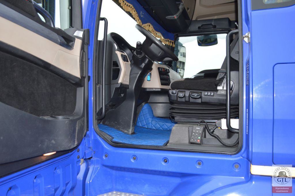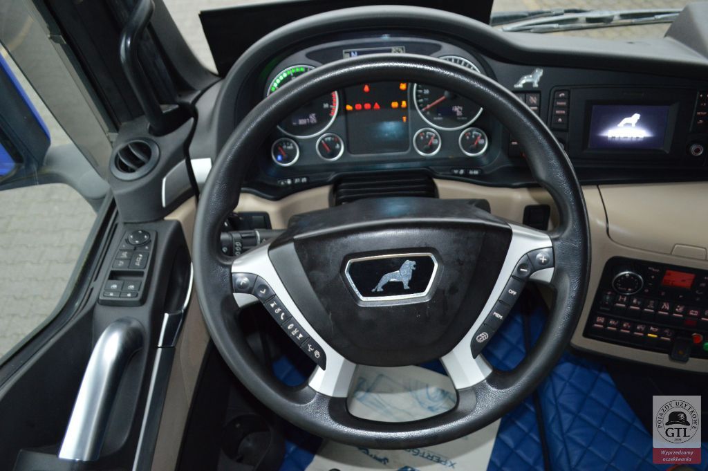 1. Elementy zewnętrzne * Halogen na dachu * Żarowe reflektory * Lusterko rampowe * Elektryczne lusterka * Osłona przeciwsłoneczna * Zawieszenie na poduszkach * Koła: 315/80R22.5 * 1 skrzynka * Klin pod koła 2. Elementy wewnętrzne * Kabina XLX * 2 łóżka * 2 miejsca * Fotel kierowcy na poduszce * Klimatyzacja * Ogrzewanie postojowe * Elektryczne szyby * Centralny zamek * Radio * CB radio * Lodówka * Szyberdach 3. Systemy * Automatyczna skrzynia biegów * Hydraulika * Tempomat * Zwalniacz * ABS * ASR * EURO 6 Firma zastrzega sobie prawo do zmiany cen. Zdjęcia zawarte w ogłoszeniu mają charakter poglądowy. Ogłoszenie ma charakter informacyjny nie stanowi natomiast oferty handlowej w rozumieniu art. 66 § 1 Kodeksu Cywilnego. W celu sprawdzenia zgodności oferty, oraz uzyskania wszelkich informacji prosimy o kontakt z naszą firmą Leasing Polski.